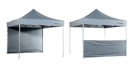 Die geschlossene Seitenwand als Schutz vor Wind und Wetter. Der Klassiker unter den Seitenwänden. Die halbhohe Variante eignet sich auch perfekt als Sichtschutz auf Märkten, Messen und Veranstaltungen.