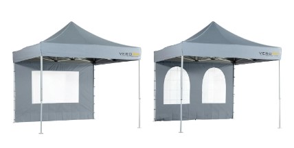 Ideal für den Outdoor-Einsatz: Bringen Sie mehr Tageslicht in Ihr Faltzelt! Unsere Seitenplanen bekommen Sie entweder mit einem großen Panoramafenster oder zwei einzelnen Fenstern mit Rundbogen.
